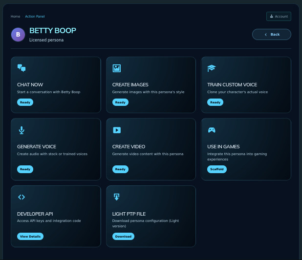 Every licensed persona comes with an action hub designed for immediate use:
